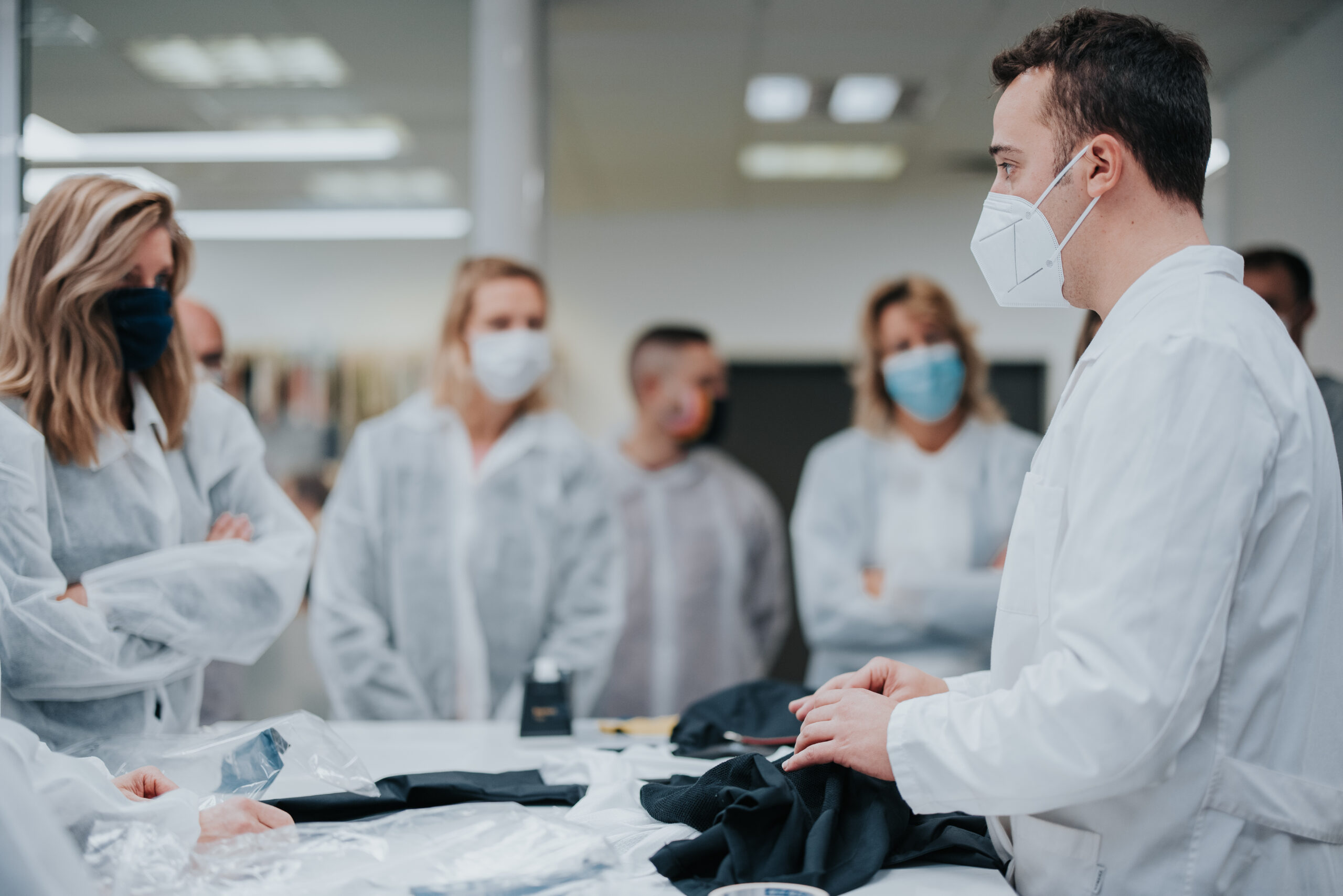 Na de welverdiende nachtrust, waren onze gasten de ochtend na aankomst uitgenodigd voor een presentatie op het Etxeondo-hoofdkantoor in Irura. Hier werden vernieuwingen in de collectie gepresenteerd. Na de presentatie volgde een rondleiding in de productiefaciliteit, waar nauwkeurig werd uitgelegd hoe het productieproces er van ontwerp tot ontwikkeling uitziet.