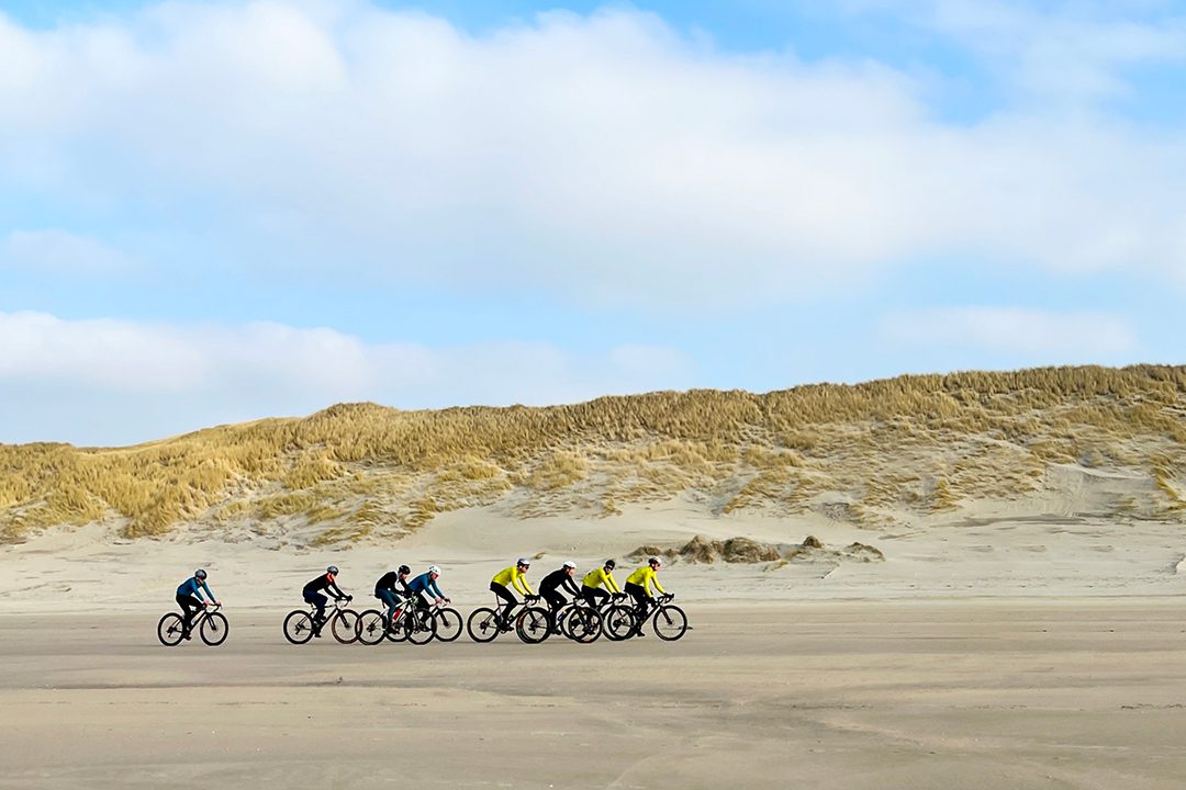 Y cómo lo que gusta es charlar sobre la bicicleta, tras coger un poco de energía, el encuentro se dividió en dos grupos para rodar en Gravel o disfrutar de las famosas rutas en bici que protagonizan la localidad: en la playa. Una sensación ideal bajo una temperatura que no empañó para nada la hora y media de rodaje. Los neumáticos anchos y con poca presión ofrecieron una experiencia única y, comandados por Ramses Bekking, experto en rutas de bici en la playa, el ciclista fue mostrando consejos y trucos para rodar tanto en la arena dura como en la blanda. Tras la ruta, vuelta al local para compartir experiencias de la jornada con una buena bebida refrescante y que recuperara más de algún aliento; "no imaginé que sería tan duro rodar en la playa" comentaba alguno.