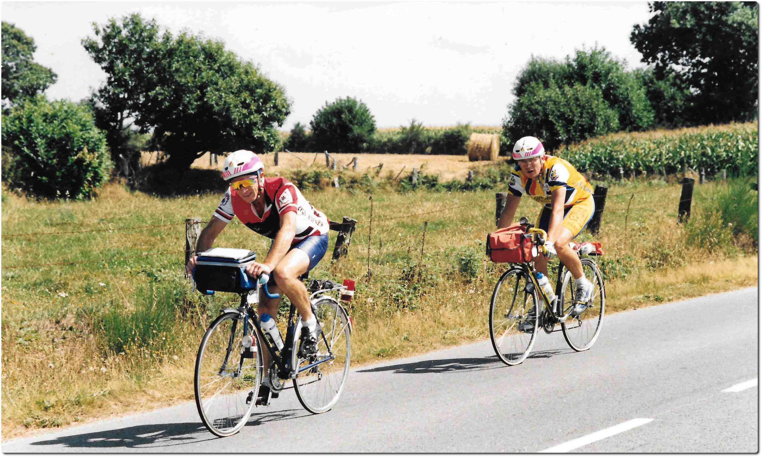 Para su segunda participación, la de 1991, Guisasola se preparó a conciencia. Nunca dejó de trabajar en su consulta médica, así que aprovechaba las tardes de los miércoles para rodar trescientos kilómetros hasta la madrugada y los fines de semana para completar tiradas de quinientos. Cuatro días antes de la París-Brest-París quiso salir a una terraza soleada de Artajona (Navarra), no vio la cristalera transparente, la atravesó y le estalló en todo el cuerpo. Lo llevaron envuelto en toallas al hospital, donde le sacaron mil fragmentos de cristales y le cosieron las piernas, los brazos, la lengua. -Buf, llevaba cuatro años preparando la prueba y unos días antes me pasó eso… No me quería rendir. Tenía que intentarlo como fuera. Al día siguiente me fui en bici de Artajona a San Sebastián, todo cosido y lleno de vendajes. Pensé que si hacía esos 150 kilómetros, podría hacer algunos más. Y los hizo. Completó la París-Brest-París, en los últimos tramos flojeó por las molestias y el cansancio acumulado, no pudo seguir al grupo en el que pedaleaba, pero aun así mejoró su marca: 48 horas y 38 minutos. -Terminé cansado pero con buena sensación. A pesar de los puntos de sutura, fui bastante cómodo. La ropa contribuía mucho: al acabar yo no tenía esa necesidad de quitarme cuanto antes el culote porque ya no lo soportaba, no tuve rozaduras ni heridas ni nada. A todo el mundo se le quedan algunas zonas dormidas, eso sí, el perineo por la presión del sillín tantas horas, las muñecas por la presión del manillar, eso no tiene remedio. Por lo demás, ese año la ropa fue muy importante para no tener molestias.