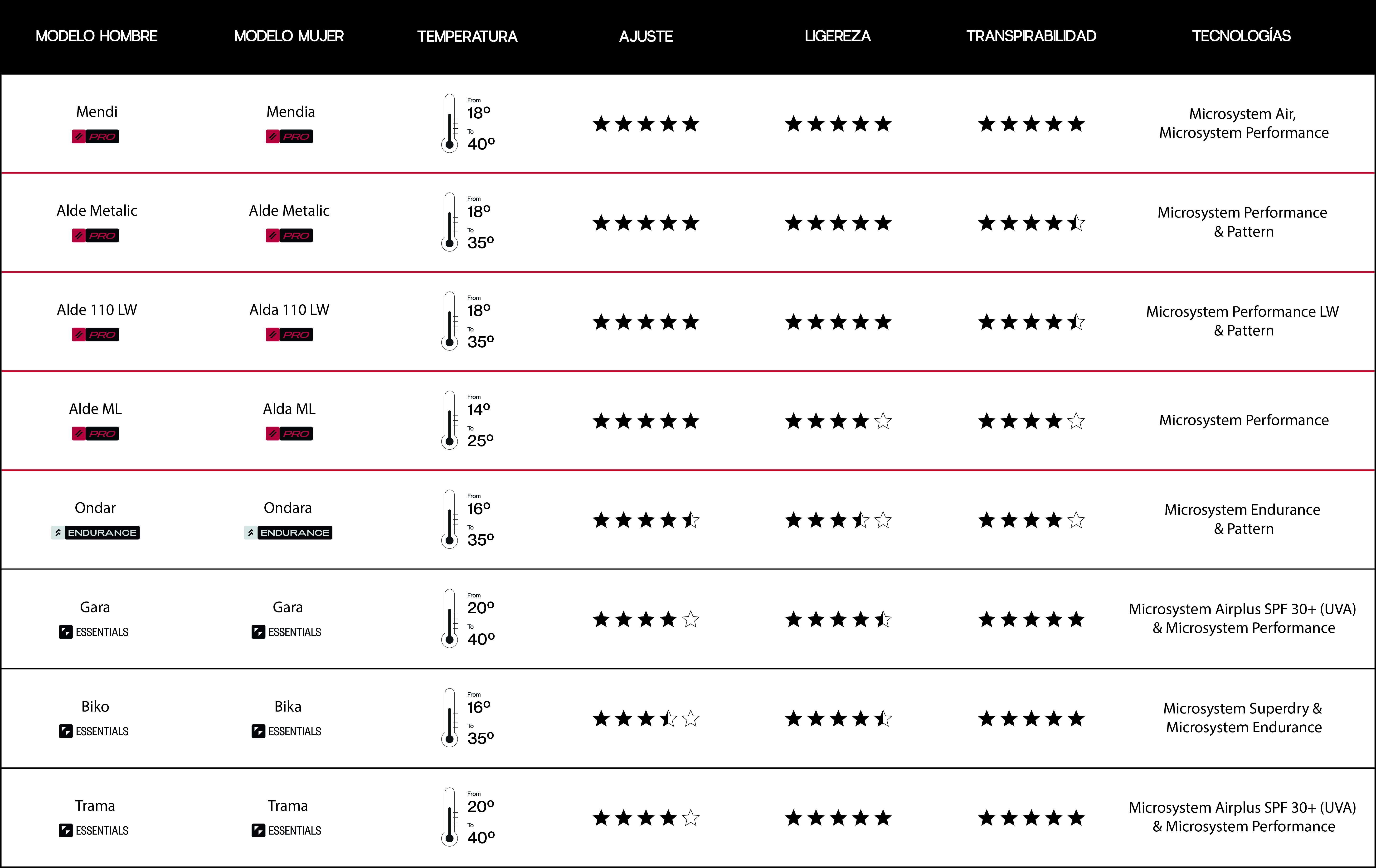 Diseñados para quienes buscan lo mejor en todas las salidas. Mendi y Mendia combinan dos tejidos de última generación: Microsystem Air y Microsystem Performance, ofreciendo máxima ligereza, transpirabilidad y un ajuste perfecto. Son extremadamente versátiles, perfectos para entrenamientos exigentes, marchas cicloturistas o días intensos en la montaña.