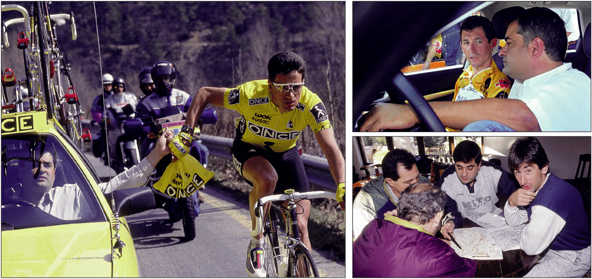 - Cuando yo llegué al ciclismo, los equipos tenían un líder y todos los demás eran gregarios puros y duros, que ganaban lo mínimo y trabajaban siempre al servicio del líder, sin ninguna ambición personal. Yo quise hacer un ciclismo de equipo: teníamos nuestros líderes, pero todos los corredores eran importantes. Yo trataba a todos por igual, todos tenían sus oportunidades durante el año, así el equipo funcionaba mucho mejor. Ganábamos carreras con Zülle y Jalabert, pero también con Díaz Zabala, Iñigo Cuesta, Neil Stephens... Quería que rindieran todos al máximo.- La ONCE era el equipo con mejor imagen -dice Paco Rodrigo-. Porque su director era el más atrevido, funcionaban como bloque, marcaban cómo se corría… Hacían un marketing buenísimo pero no con palabras sino con hechos. Eso se notaba, yo vendía miles de prendas de la ONCE.