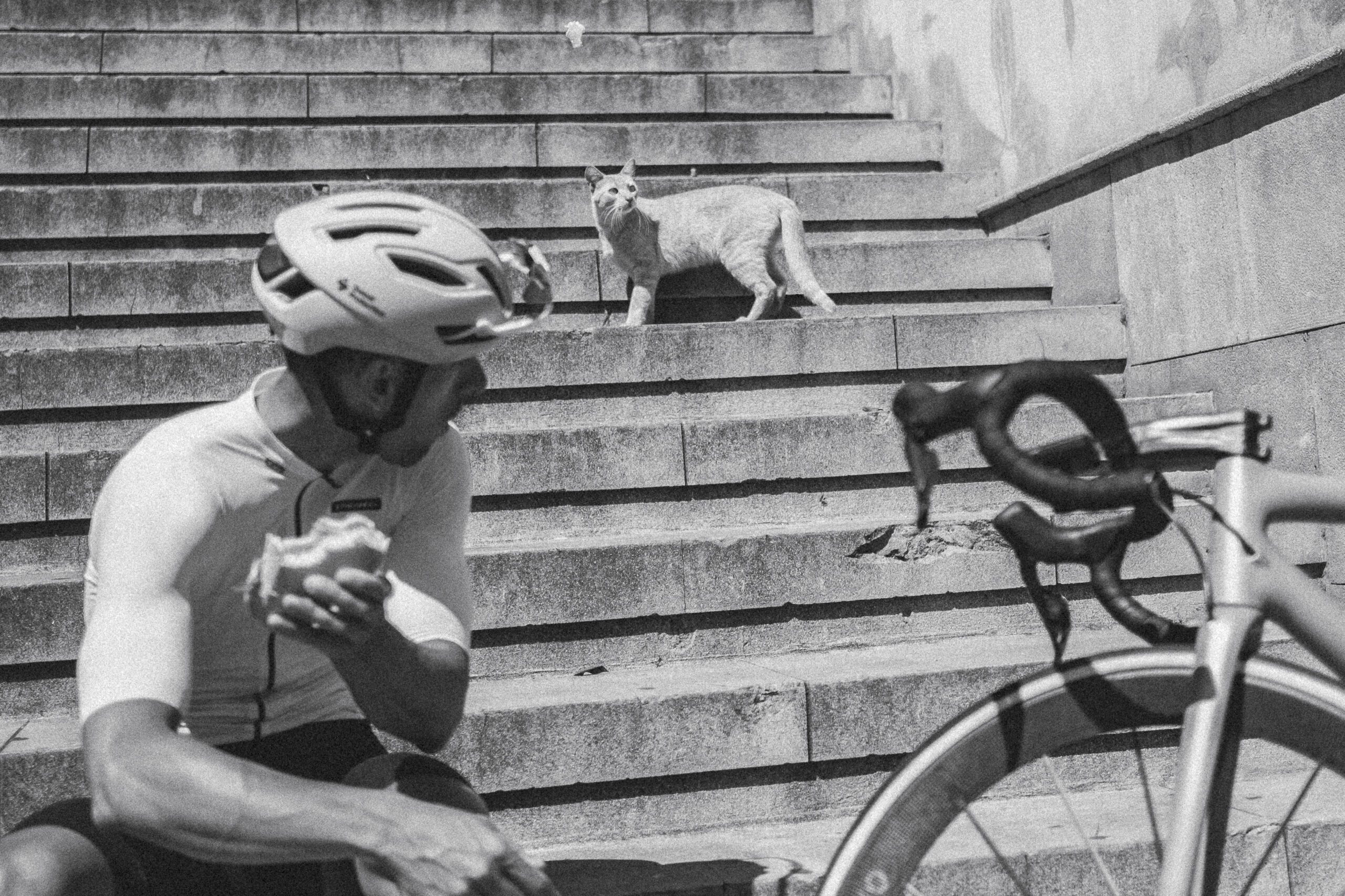 Parada larga de 20 minutos para reponer fuerzas. "Tenía los pies recalentados y ya superábamos los 30 grados" destaca Dani Sanz. Entre bares llenos a rebosar y el tiempo que no quería perder, supermercado y bocadillo improvisado de jamón.