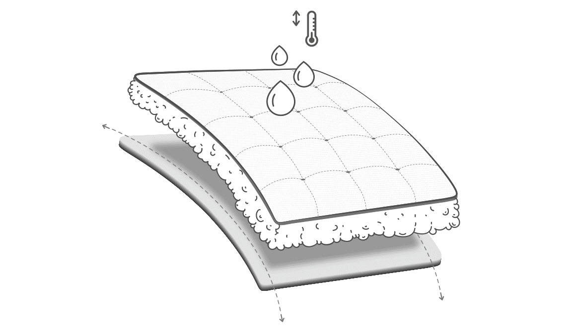 Tejido técnico desarrollado para aportar calor con una agradable sensación de confort al contacto con la piel, compuesto de fibras ligeras que proporcionan una protección solar 50+ (UVA). La tecnología empleada para tratar las fibras del tejido otorga propiedades para mantener la temperatura corporal con una elevada transpiración. Hilos ligeros y absorbentes que regulan los niveles de humedad.