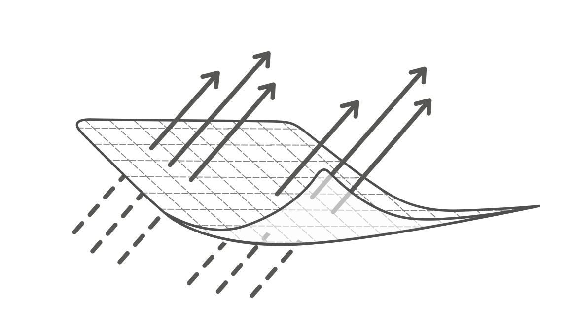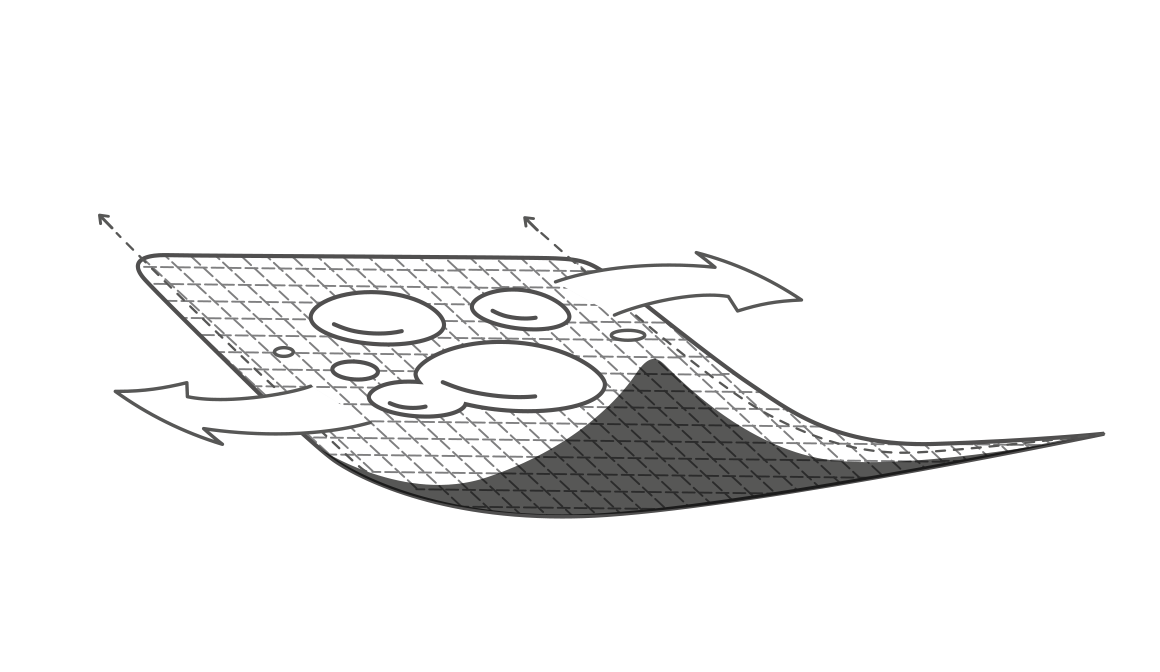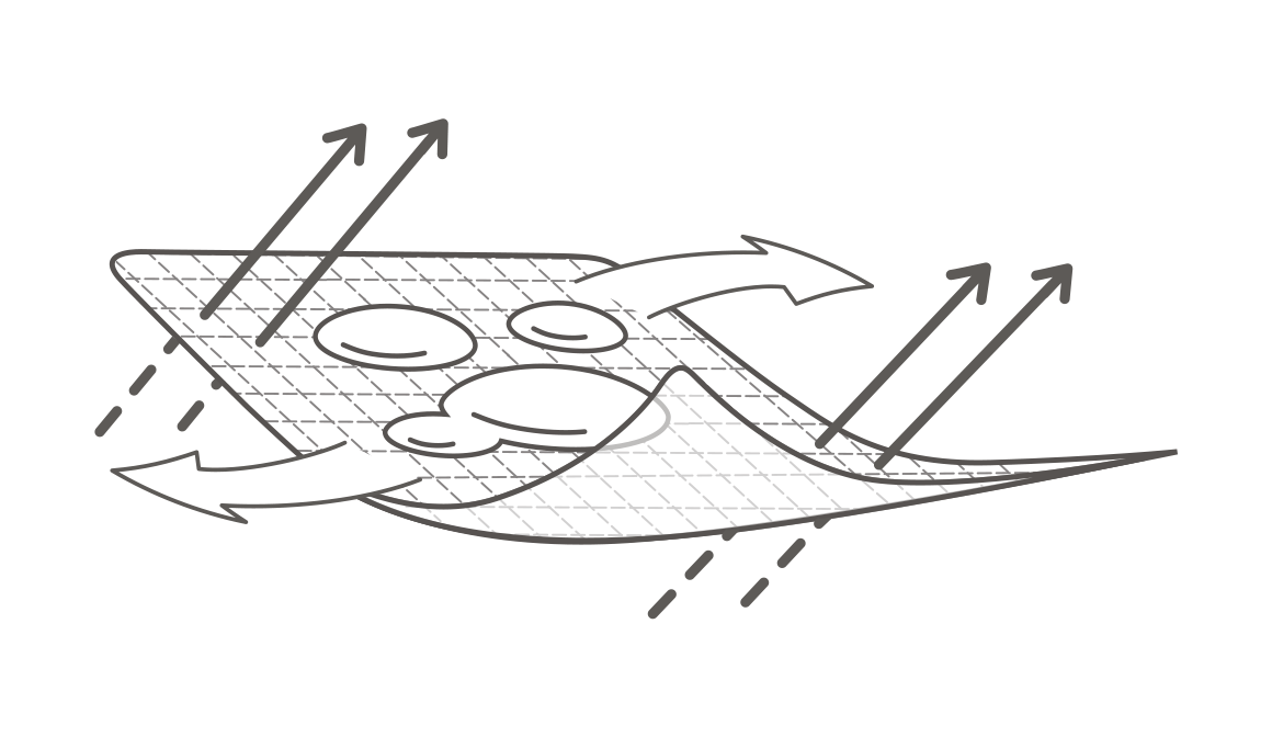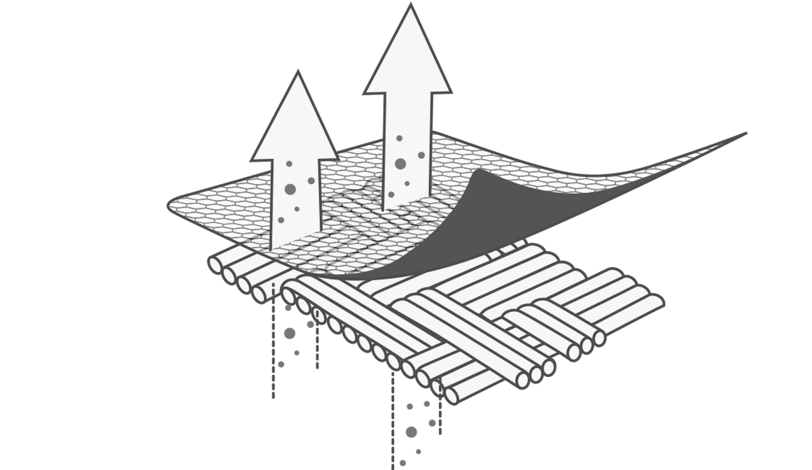 Tejido técnico desarrollado para maximizar la transpiración, compuesto de fibras extremadamente ligeras. La tecnología empleada en la unión de sus fibras permite obtener un tejido altamente transpirable que expande el vapor producido por la piel evaporando la sudoración. Hilos de gran ligereza y bajo volumen para mejorar la circulación del aire y mantener la temperatura corporal.